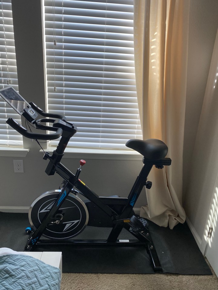 Investing in a piece of equipment to go into my home is one of the best things I’ve ever done. I don’t have to worry about outside germs or who will watch my baby. I get to jump on my cycling bike and work out some stress.